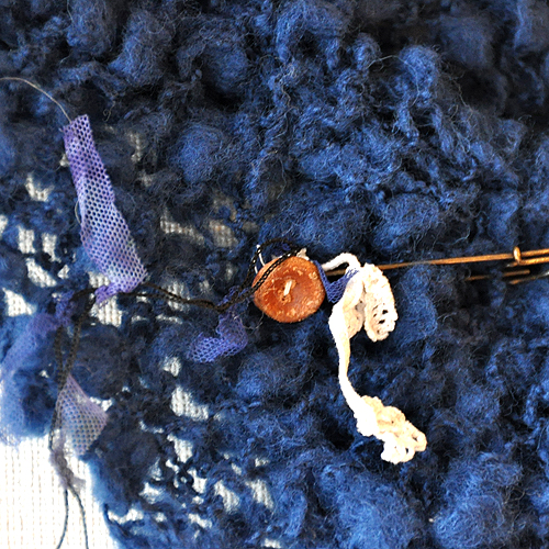 鮮やかなブルーのマフラーです。肌触りの良いもこもこの糸で丁寧に編みました。