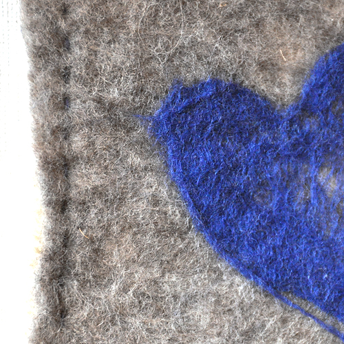 グレーのフェルトにあざやかなブルーのハートをデザインしました。